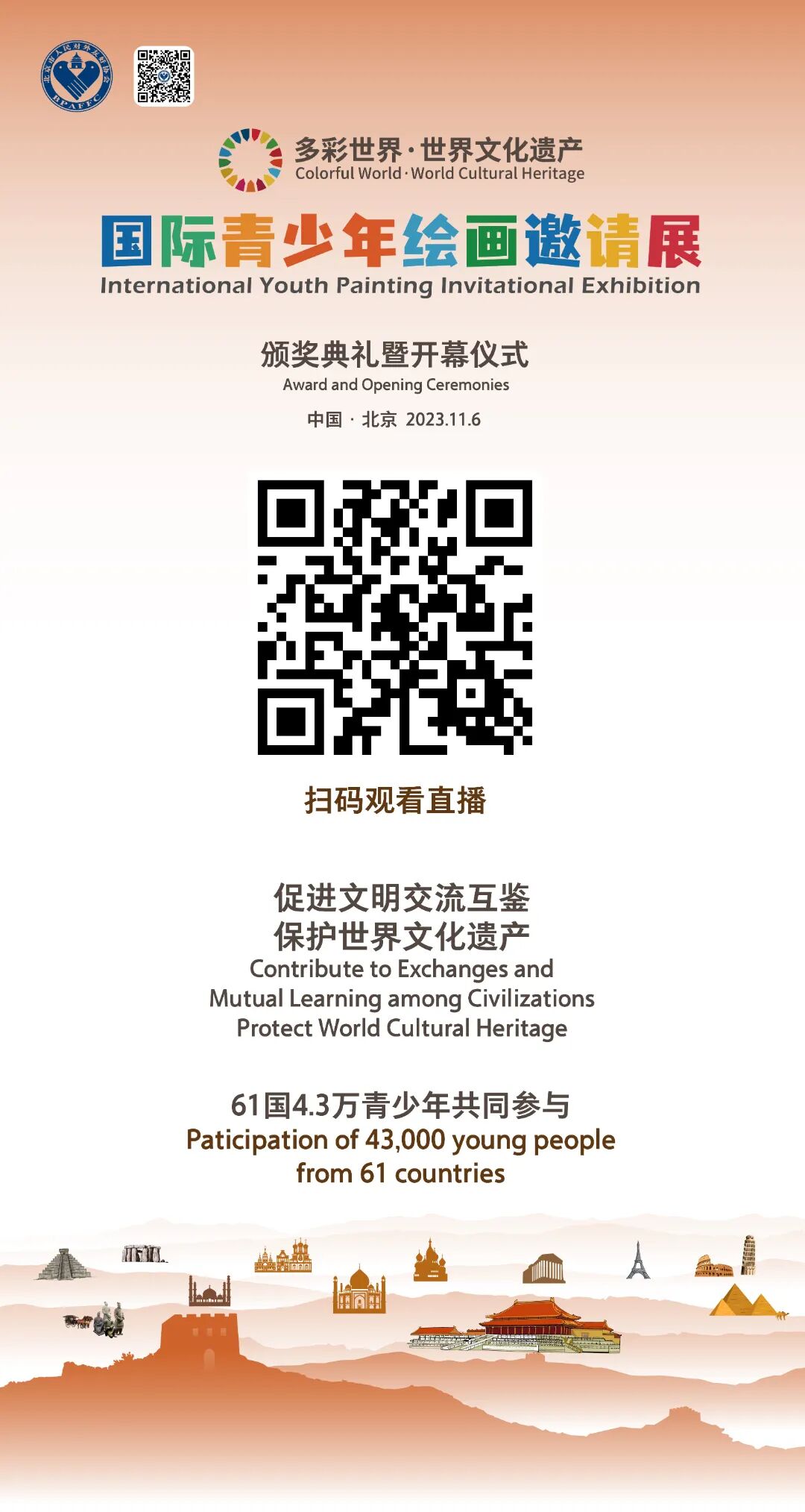 The 2023 “Colorful World·World Culture Heritage” International Youth Painting Invitational Exhibition received widespread attention at home and abroad since it was launched in May. Friendship organizations and overseas Chinese organizations in 61 countries, and more than 2,000 schools and art institutions in China and abroad participated in the organization of the exhibition. The Organizing Committee received a total of 43,000 original entries. Domestic participants come from 31 provincial-level administrative regions as well as Hong Kong, Macao and Taiwan regions. International participants come from 59 countries including Australia, Germany, Malaysia, Mauritius, Spain, and the United States.