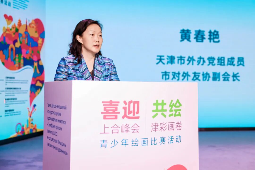 黄春艳副会长致辞表示,此次活动作为迎接上合组织峰会的一场重要民间青少年人文交流活动,具有特殊意义。上海合作组织是真诚倡导“和而不同”文明交流互鉴准则的典范,广大青少年充分发挥丰富的想象力和创造力,用手中的画笔画出了天津的开放包容、天津人民的热情友好、新时代天津青少年的精神风貌和美美与共、心心相通的上合大家庭,通过独特视角讲好天津故事、中国故事、上合故事,促进了天津与上合组织大家庭在人文艺术领域的交流互鉴。希望广大青少年弘扬传承“上海精神”,当好上合组织国家民心相通的友好小使者。