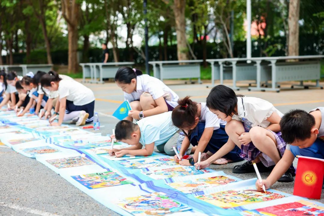 活动期间,主办单位颁发了最佳作品奖、优秀创意奖、文明小使者奖、优秀参与奖和优秀指导教师奖、优秀组织单位奖等个人和集体奖项。获奖作者、指导教师和评委代表先后发言分享参与活动的体会感悟。颁奖仪式前,开展了“共绘百米长卷”活动,近百名青少年现场绘制上合主题的巨幅长卷画作。