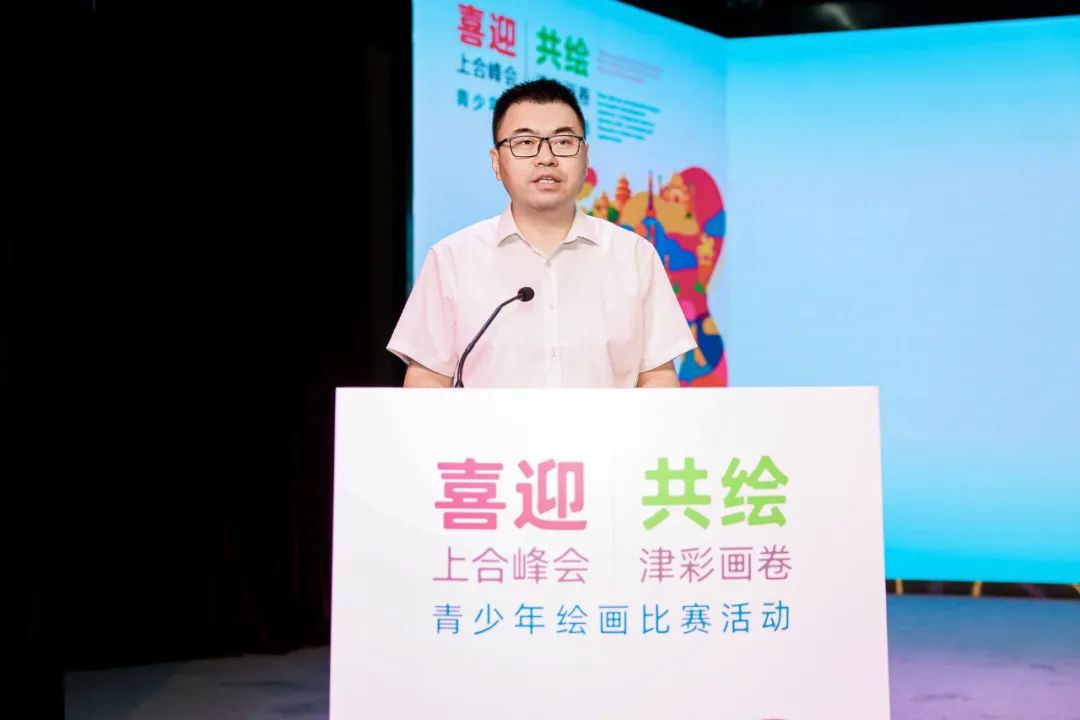 席一政副书记致辞表示,本次大赛以迎接上合峰会为契机,旨在引导青少年关注国家外交盛事,增进国际理解,厚植家国情怀。参赛作品主题鲜明、内容丰富,充分体现了对“上海精神”的理解、对多元文化的包容、对和平友谊的向往、对家乡天津的热爱,展现了艺术促进民心相通的独特力量。希望青少年朋友们从小关注国家大事,理解并践行“上海精神”,持续提升艺术素养,用艺术的形式描绘出属于新时代青少年的精神风貌和独特魅力,展现我国推动构建新型国际关系、促进世界和平发展的坚定决心。