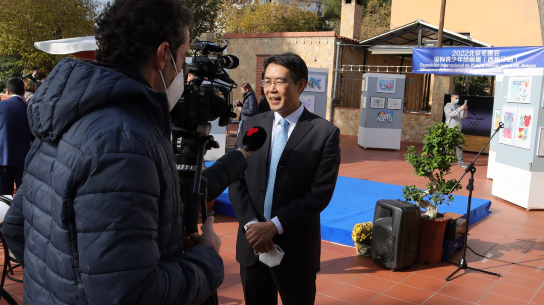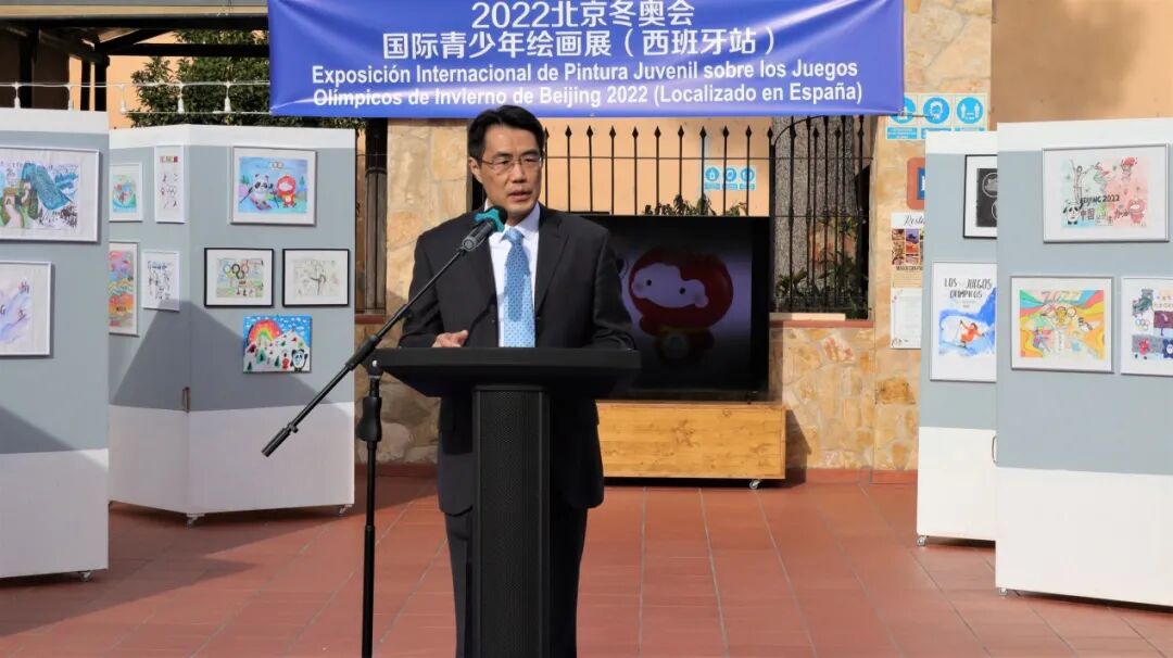 朱京阳总领事在致辞中对有关侨团的组织工作和特拉萨市政府的大力支持表示赞赏。朱总领事强调,北京冬奥会和冬残奥会是中国人民的大事、奥运史上的盛事,备受世界瞩目。本次画展对向西班牙朋友们宣传北京冬奥、深化中西友谊、弘扬奥林匹克精神具有积极意义。中西少年儿童用绘画作品表达了对北京冬奥、中西友好和美好未来的真诚祝福,传递出两国年轻一代纯真、阳光、善良的心声。西班牙是体育强国,奥林匹克底蕴深厚,体育运动早已成为当地民众生活中不可或缺的内容,也塑造了当地开放、包容的社会文化氛围。希望中西年轻一代从小学会尊重、团结、帮助、分享,共同开创幸福美好的明天,成为中西友好的传承者。
